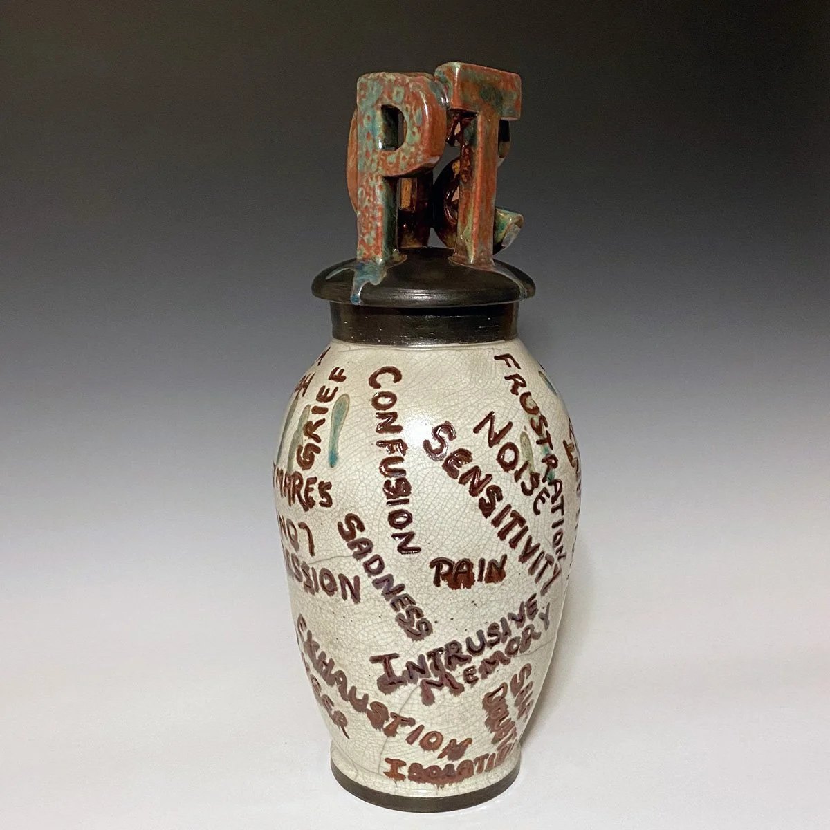 Shauna MacLeod PTSD Symptoms Raku Fired in Reduction, Raku Clay 15” x 6” $495